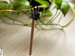 ダブルクリップにお香を挟み、クリップの穴に棒を通します。